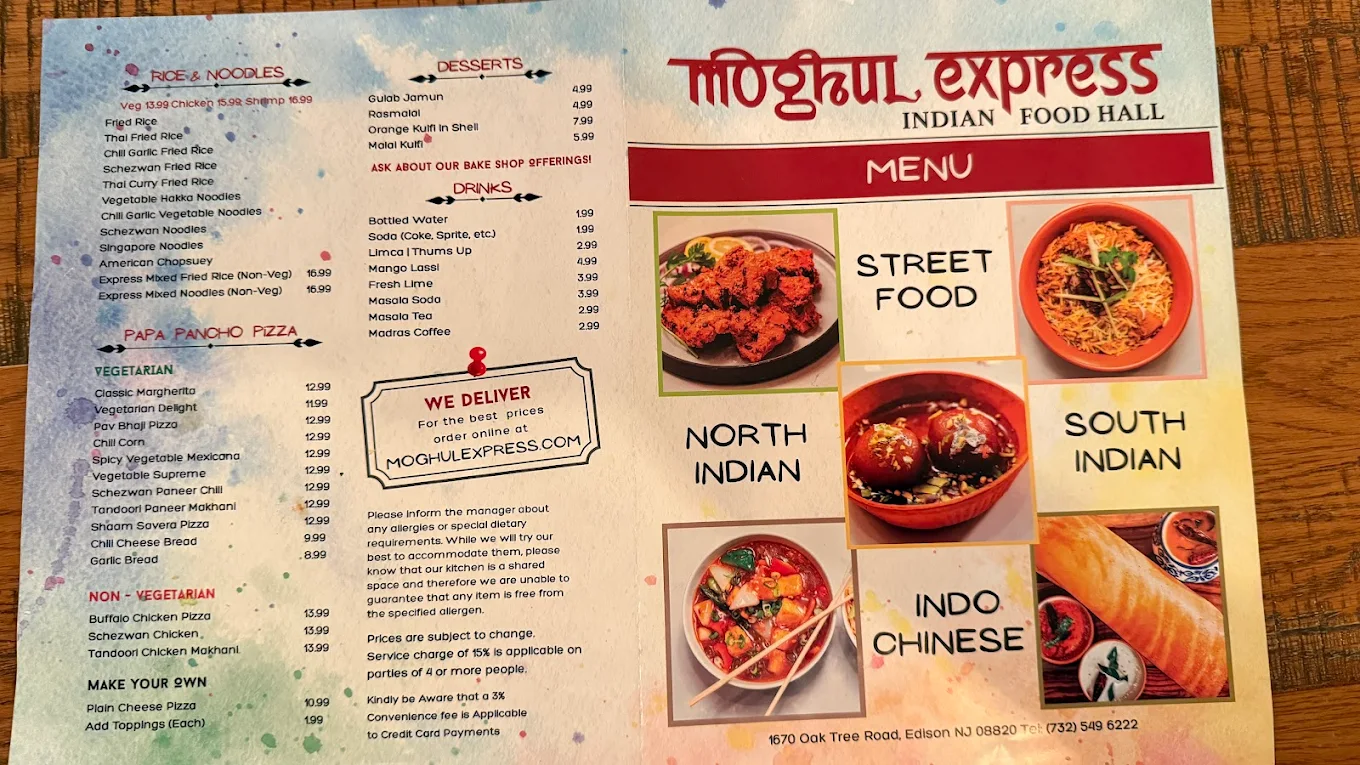 Moghul Express brings the diverse and flavorful cuisines of India to your plate, offering a wide array of North and South Indian, Street Food, Indo-Chinese, and Pan Asian delicacies, along with an exquisite selection of Indian and fusion desserts.